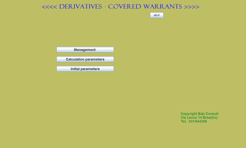 values of the warrant call and the warrant put with an hypothetic underlying in correspondence